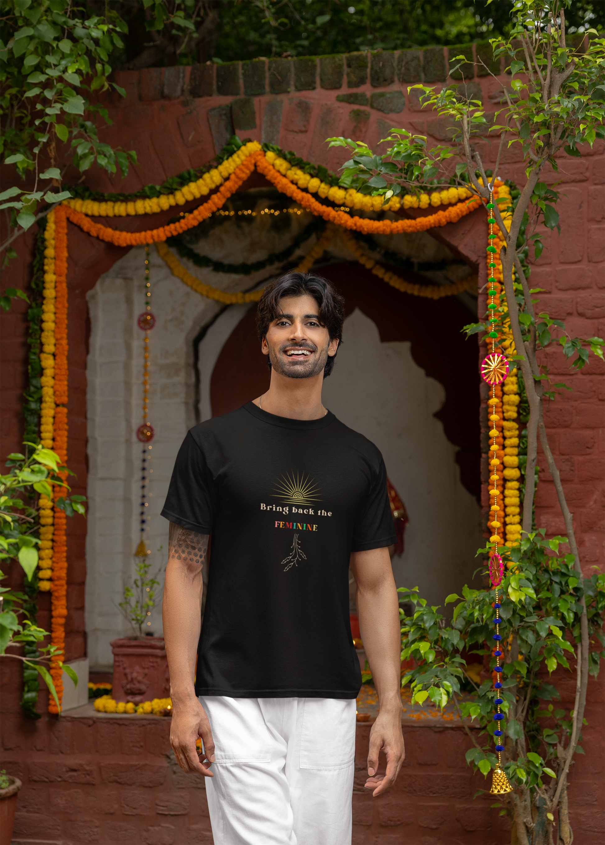 This isn’t just a T-shirt — it’s a statement. Bring Back the Feminine is a call to rise beyond rigid roles and reclaim the forgotten wisdom of softness, intuition, and stillness. For the man who knows true power lies not just in doing, but in being.